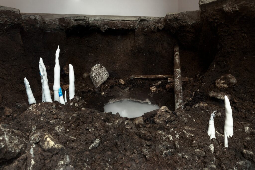 Dwa miesiące izolacji będące wynikiem głębokiego „lockdownu” jedynie z perspektywy czasu będą się wydawać, być może, mało znaczącym przestojem. W wymiarze globalnym oraz indywidualnym czas ten wywołał szereg zmian – w kontekście politycznym, ekonomiczno-społecznym, ekologicznym czy psychologicznym, co zmusza nas do refleksji. W niespełna pół roku pandemii królestwo ludzi, rozumiane jako forma władzy ukonstytuowana przez człowieka w relacji do natury, utraciło pozorny status hegemona. Mierząc się z nowymi okolicznościami, redefiniując swoje wcześniejsze poszukiwania Dominika Kulczyńska, Kalina Bańka, Karina Marusińska, Hubert Kielan, Barbara Żłobińska i Mariusz Maślanka oraz Wojtek Furmaniak realizują obraz okresu post królestwa ludzkości. Wystawa Królestwo jest wizją tego, co mogłoby nastąpić po erze człowieka. – mówi Dominika Drozdowska